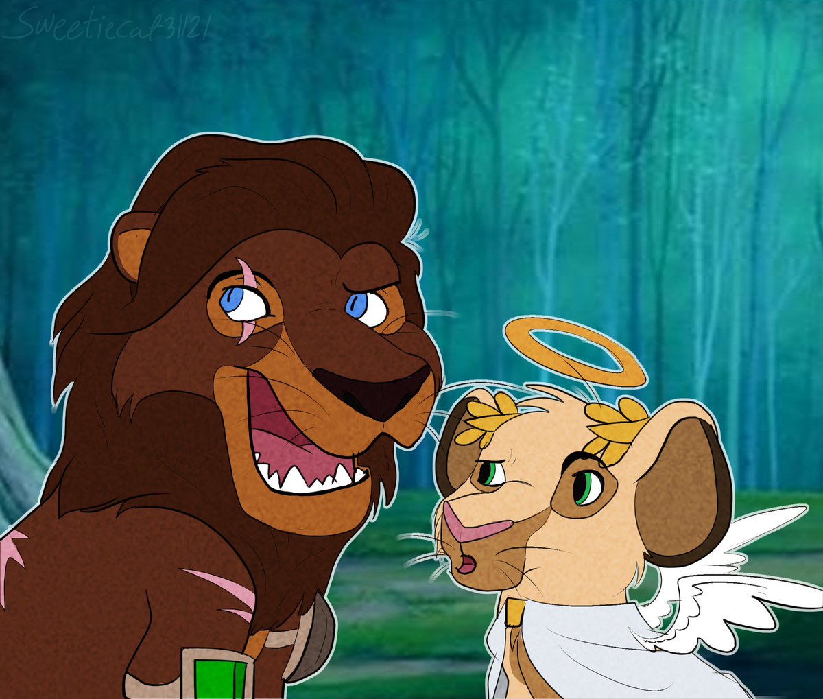 asked mythical sausage what animal he would be and he said lion (Ft. hermes!!) so here ya go sausage! didnt draw the bg btw!! retweets apperciated! [@Mythicalsausage #mythicalsausagefanart #mythicalsausage #Empirestwt #empiressmp #EmpiresSMPfanart #empiresmp #art #fanart]
