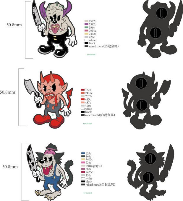 New Cartoon Creepies enamel pins for sale on my webstore #enamelpins #horror #creepycute #darkart #kawaii