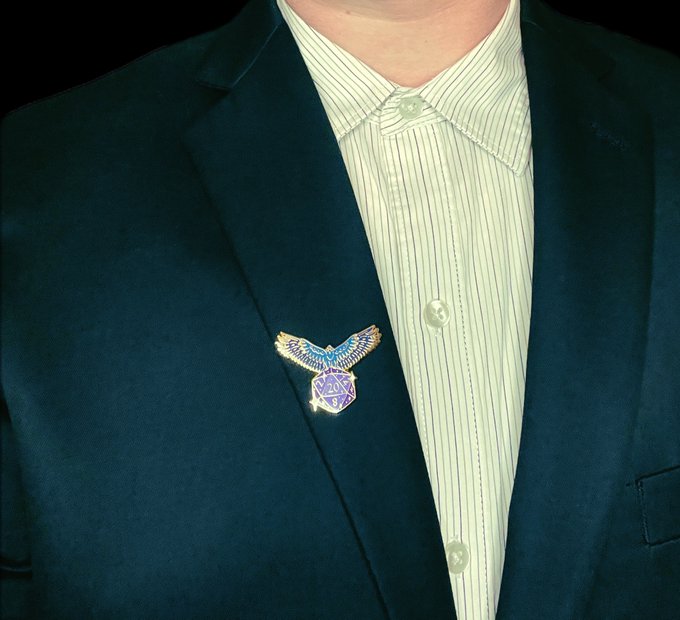 Nothing shows you mean business like an enamel pin hawk holding a natural 20. #enamelpins #pins #dnd #fantasy #dungeonsanddragons #EnamelPins #dndart