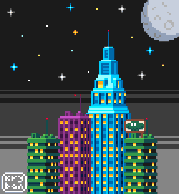 Here is my skyscrapers. I followed the steps of @rayslynyrd tutorial. #pixelart #digitalart #ドット絵 #endesga64 #krybanart @HuionTab @HuionEspanol