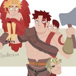 I wanted to try out a new style so i redrew an old God of War au doodle feat eni as kratos, shouto as atreus, sir nighteye as mimir and hawks as a guy with feathers on his ass because endhawks #endhawks #enho #hawksdeavor #endeavor #enjitodoroki #hawks #keigotakami #mha #bnha