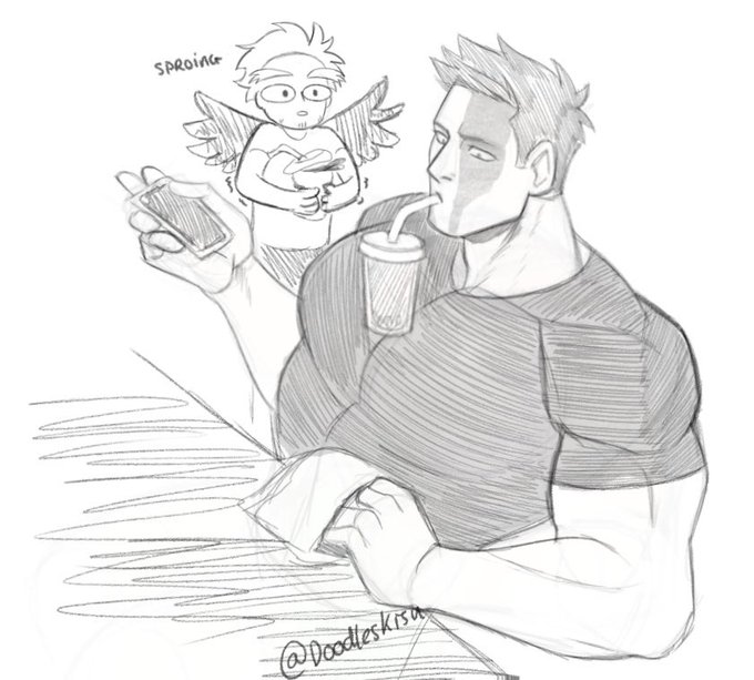Enji drinking some delicious boob tea ❤️❤️❤️ #endhawks #enho #hawksdeavor #endeavor #enjitodoroki #hawks #keigotakami #mha #bnha