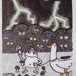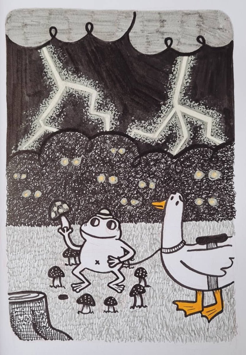 Inktober Day 9 & 10: Pressure + Thunder + Goose + Pick + Frog + Fairy Ring #art #illustration #inktober2021 #peachtober21 #endicottsteaparty21