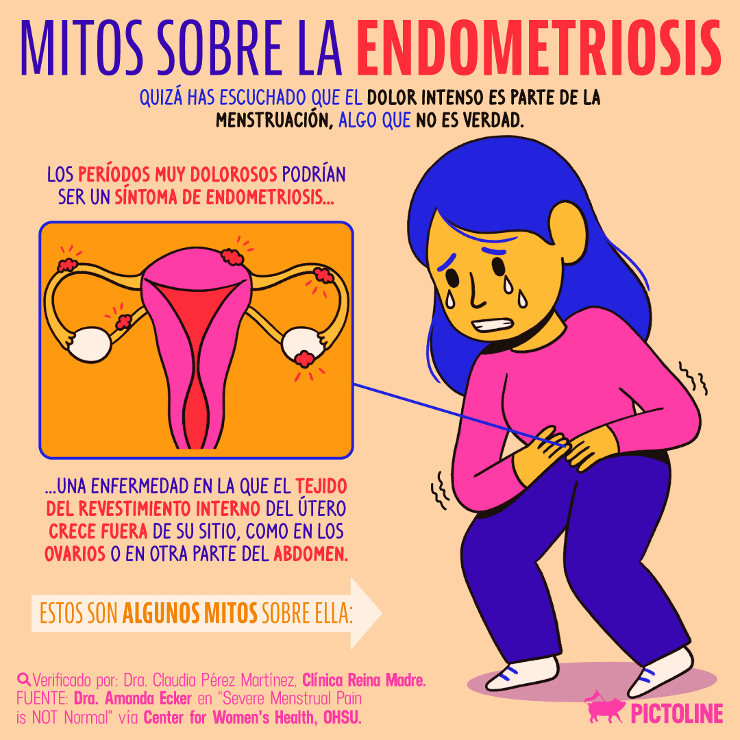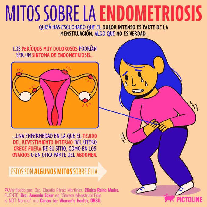 A muchas se les ha hecho creer que el dolor intenso durante la menstruación es normal, ❌algo que no es verdad❌ y podría ser un síntoma de #Endometriosis 😵🩸 Estos son 4 mitos sobre esta enfermedad