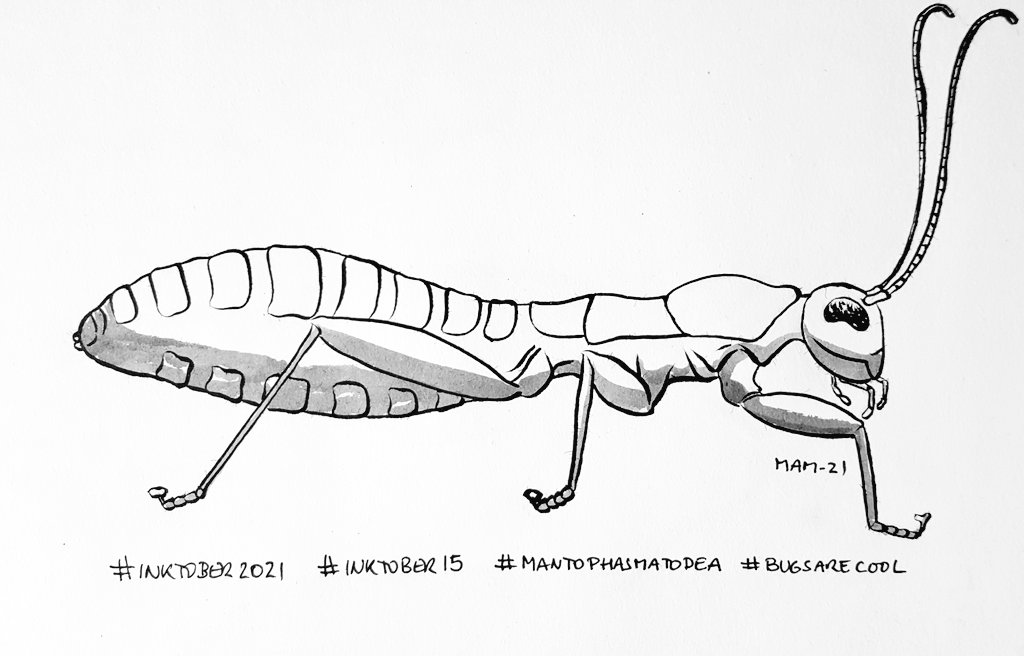 Otro orden (15º) de #insectos que parece una mezcla de varios órdenes: #Mantophasmatodea descrito en 2002 con unas 8 spp. y que apareció hace 45 ma #inktober2021 #gladiator #heelwalker #insects #entomologodeguardia @ento_e