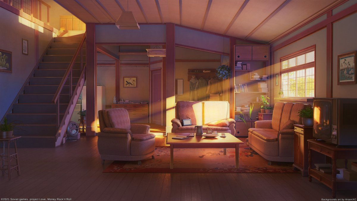 Sitting-room in house, variants. Background I created for the "Love, Money, Rock’n’Roll" visual novel game. #digitalart #painting #enviroment