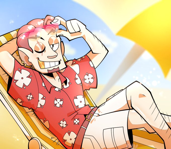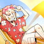 #epitheterased #fanart もう8月か…夏といえばアロハシャツなので、アロハシャツが世界一似合う詐欺師のRamseyさんを描きました🌺🕶 海に入って泳ぐってよりかは、座ってのんびり日焼けしてそう