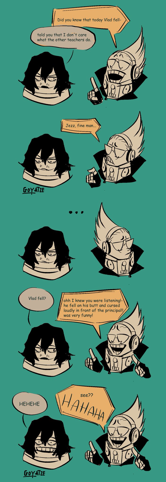 gossip about other teachers but it's just Mic talking and Eraser listening annoyed 😆 (1/2) +silly short comic ⬇️ #eraserhead #presentmic #erasermic #aizawa #hizashiyamada #bnha #fanart