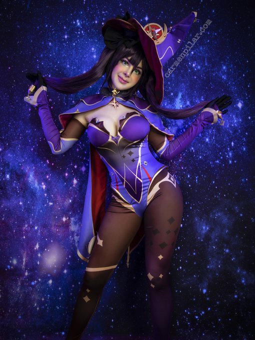 While you wait for the new set of the #GenshinImapct Christmas waifu, I leave you a photo of the session of #MonaMegistus the🍑of Teyvat, If you are interested in seeing it in full you can do it at fansly.com/post/310612162…, I'm sure you won't regret it . . #cosplayer #erocosplayer