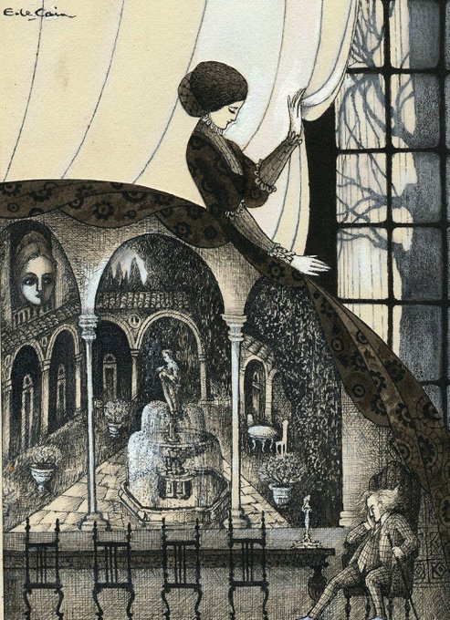 Illustration from "My Cousin Rachel", a novel by British author Daphne du Maurier, Artist : Errol le Cain, 1970 #errollecain #art #penandink #dapnedumaurier #illustration