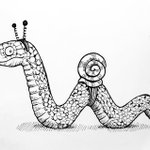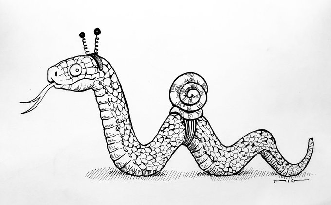 Jour 30 - Slither / Glisser #inktober #inktober2021 #inktoberslither #inktoberday30 #slither #glisser #snake #snail #serpent #escargot #fakesnail #fauxescargot