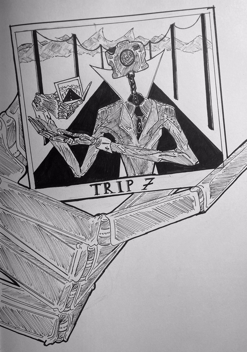 InkTober day 7: "Trip" "May I take your photo? It'll take only one eternity". #Inktober #inktober2022 #trip #originalcharacter #Traditional #traditionalart #OC #photographer #photo #art #eternity #road