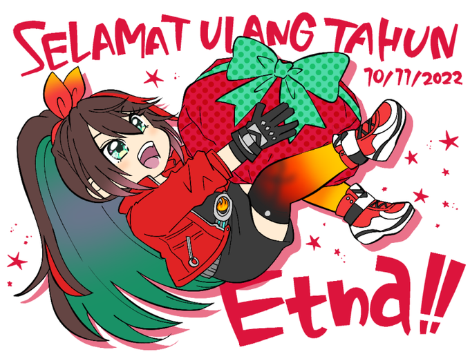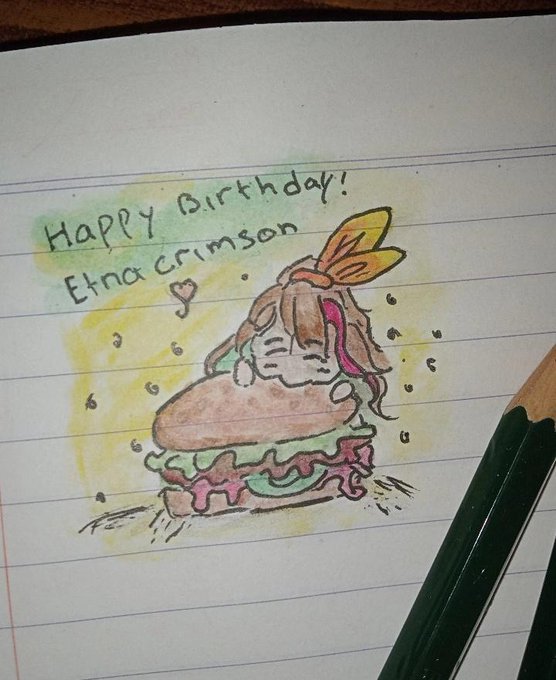 Sebuah fanart untuk merayakan hari ulang tahun Etna Crimson kesayangan kita!! Semoga Etna makin sukses kedepannya yaa. Pokoknya all the best wishes for you lah hehe 🍔🎉 Btw, ati-ati jalannya nanti borgar nya jatuh Etnaaaa #Etnambahusia #Etna_art