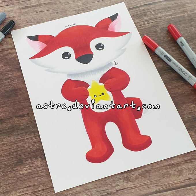 [Miam aime les étoiles] Yum loves the stars. 🛒 deviantart.com/astre/shop/pri… ☕ ko-fi.com/astrehoshi #miam #yum #etoile #star #renard #fox #ヤム #星 #キツネ #alcoholmarkers #copic #feutrealcool #アルコールマーカー #コピック #traditionnal #artwork #illustration #art #イラスト