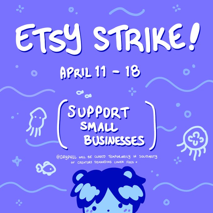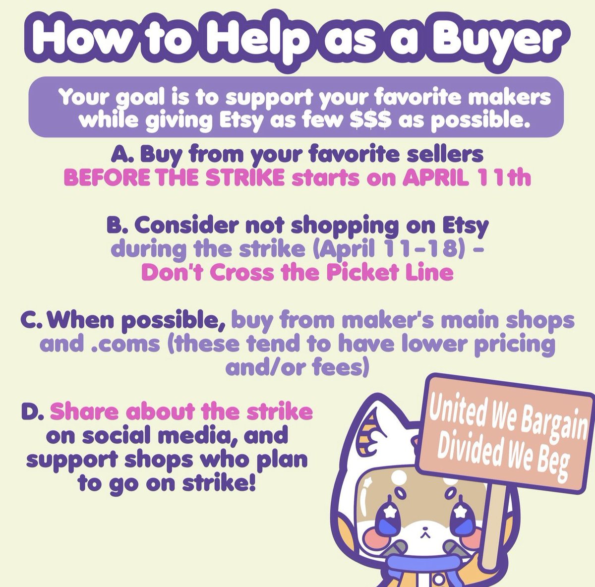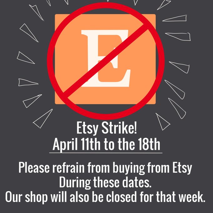 Reminder that the strike begins today! Our shop will be participating and is on Vacation mode for the week. Please help support the strike by not buying from Etsy this week! #EtsyStrike