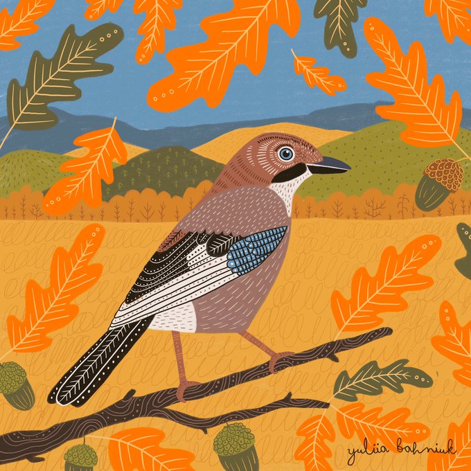 A beautiful Eurasian Jay for @BirdWhisperers ! #birds #eurasianjay #BirdWhisperer #art #birdart #birdartist #ornithology #illustration #illustrator #JulianaMotzko