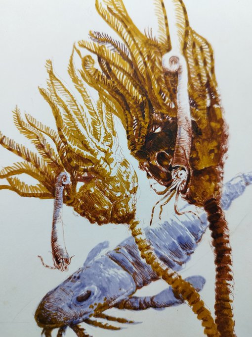 I ended up liking my one Jaekelopterus piece from before so much that I went back and and touched up on it to make it look more refined. Really happy with how it turned out. #paleoart #paleostream #eurypterid #paleontology #trilobite