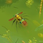 a colorful Mycteroptid eurypterid briefly surfaces from the Murky freshwater depths #paleoart #mycterops #eurypterid #seascorpion #carboniferous #megarachne #chelicerata #illustration #arthropod