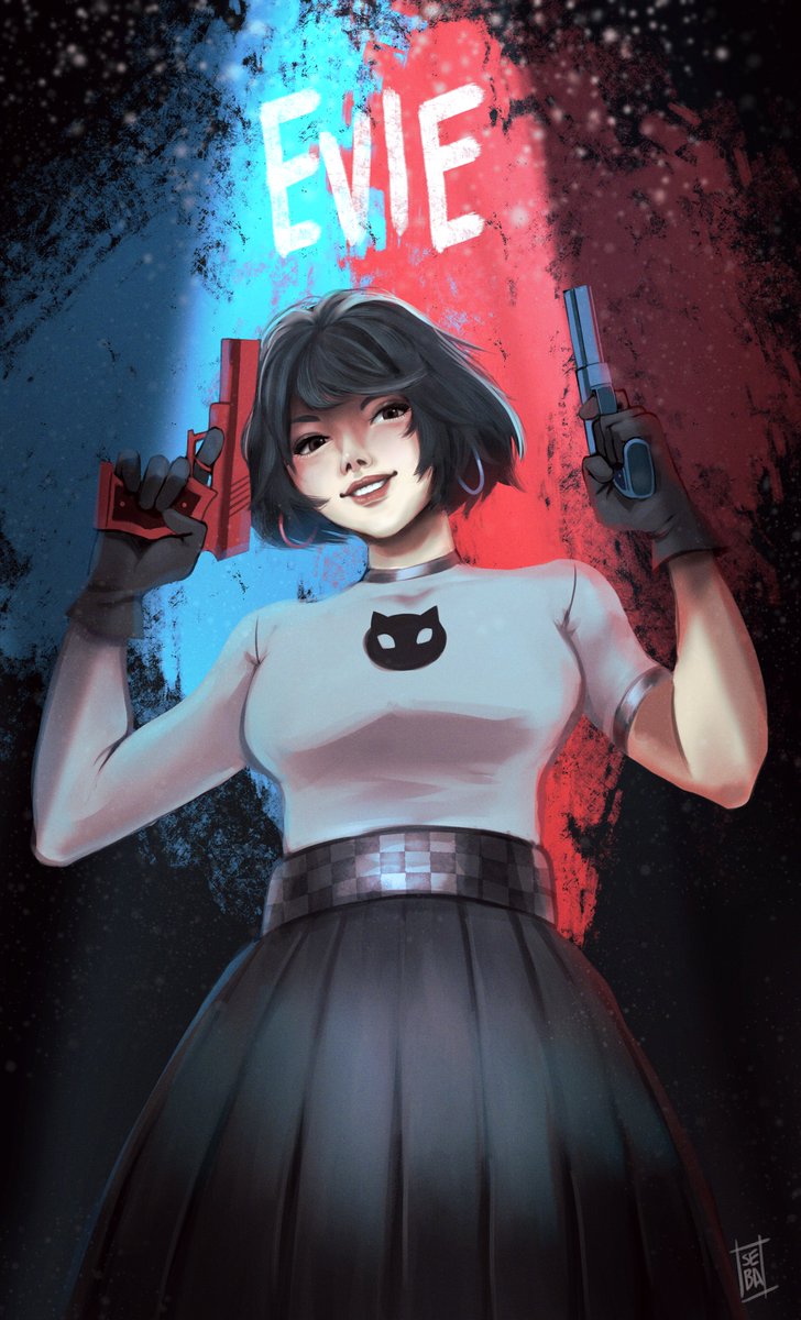 イーヴィー。 最初、スマホを持たせたんですが、デザートイーグル描き足したヤツも作りました。 #フォートナイト #フォートナイトイラスト #イーヴィー #EVIE #fortnite #fortniteArt #fortnitefanart