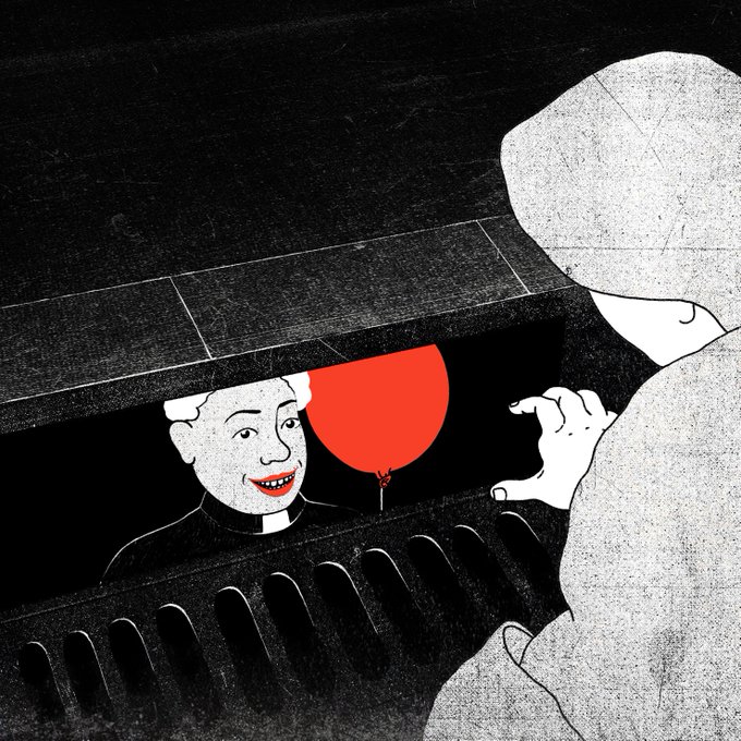 🤡 @furia_nuria para @elestafador Seguimos hablando de #pederastia en la #iglesia #humor #humorgrafico #cura #contrapedofilia #iglesiacatolica #it #pennywise #evilclown #illustrationoftheday #conceptualillustration #illustration #ilustracion #meme