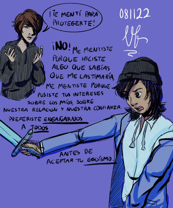 «Me mentiste porque hiciste algo que sabías que me lastimaría […]. Preferiste engañarnos a todos antes de aceptar tu egoísmo». ¿Yo? ¿Proyectándome durísimo en mi casita rota llamada #Luckity ? Obviamente. #KarmalArt #EvilLuzu #QuackityFanart
