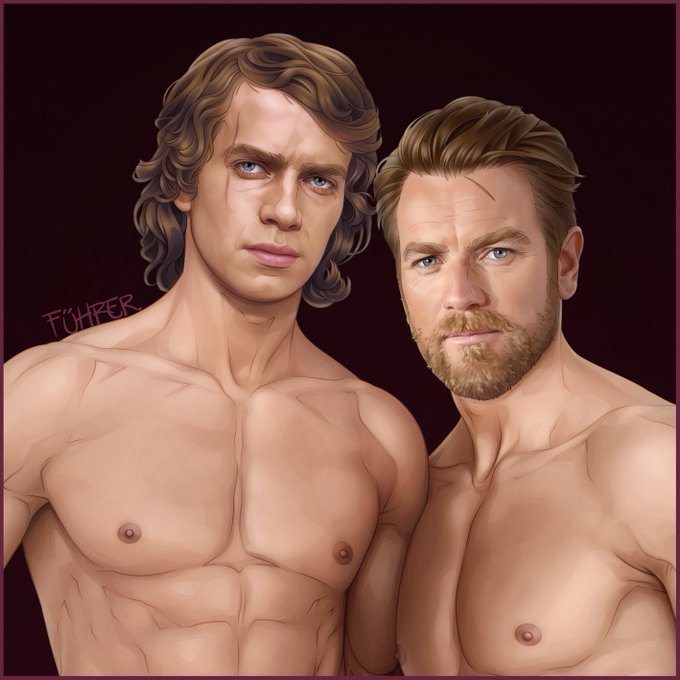 New illustration of Obi-Wan and Anakin #obikin 💜💜💜 #illustration #fuhrerdoodles #ewanmcgregor #haydenchristensen #starwars