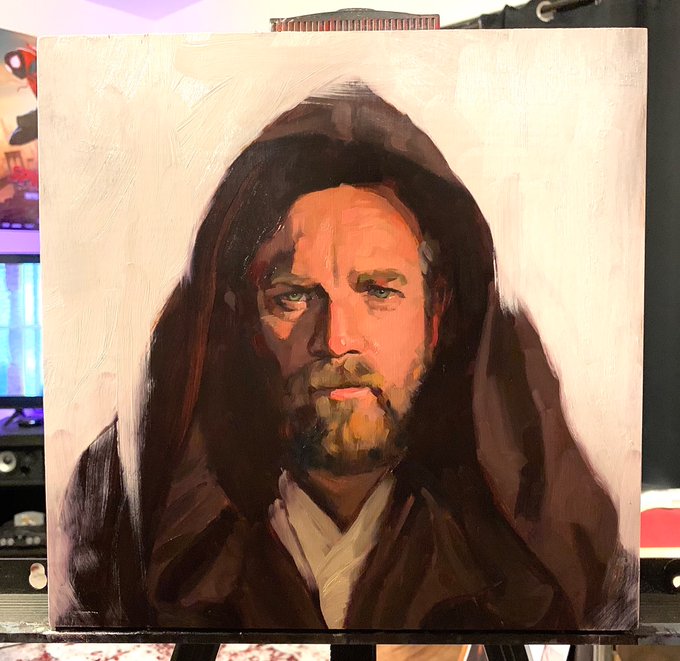“Hello there!”👋🏼 Oil paint on birch. I had to do a painting of Ewan Mcgregor as older Obi Wan Kenobi! 🙏🏼 #ObiWan #ewanmcgregor #StarWars #FANART #oilpainting