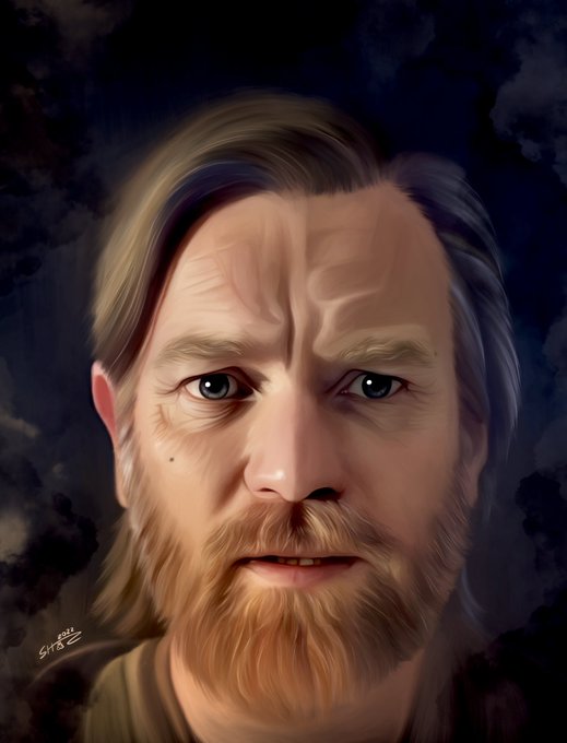 Hello there! My painting is finally done! Sorry it took me so long folks, but I‘ve been trying to do right by his glorious hair and beard - and now excuse me while I rest my hand for a year. 😂 #Painting #Fanart #StarWars #Obiwan #ObiWanKenobi #AttackoftheClones #EwanMcGregor