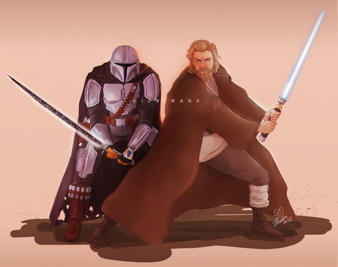 a mandalorian and a jedi? they'll never see it coming #fanart #themandalorian #ObiWaKenobi #StarWars #pedropascal #ewanmcgregor