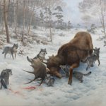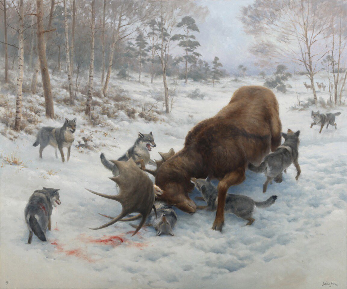 A hungry wolf pack would have struggled to bring down a giant deer, even a sick or injured animal. After Landseer. #extinctirishanimals #irishwildlife #extinction #paleoart #prehistoricanimals