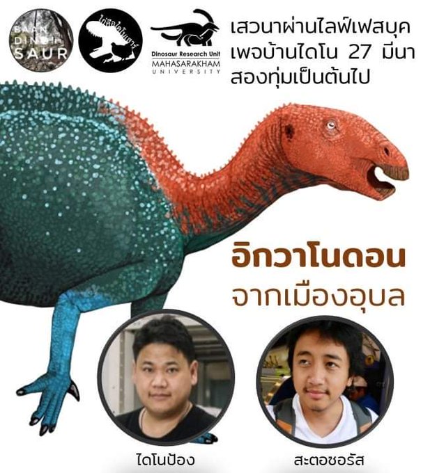 พบกับการเสวนาออนไลน์เรื่อง "อิกัวโนดอน จากเมืองอุบล" ในคืนวันอาทิตย์ที่ 27 มีราคา นี้ เวลา 2 ทุ่มเป็นต้นไป ที่เพจบ้านไดโน m.facebook.com/story.php?stor… #บรรพชีวินวิทยา #fossils #paleontology #paleoart #dinosaur #extinction #ไดโนเสาร์ #BaanDino