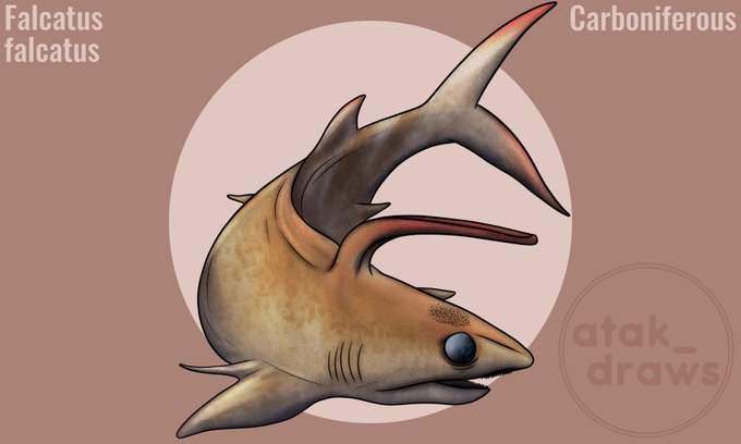#Falcatus falcatus was a fish in the order #Symmoriiformes, which included fish that resembled #sharks but were not actually true sharks, from the #Carboniferous. #paleoart #paleontology #extinction