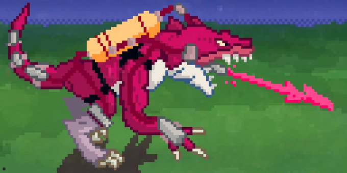 Well, I guess I had a new T-Bone stance that I had lying around, so I made some finishes and show it. The pauldrons are going to be added and put on this thread. I might have to add colors if I want to have those boots complete. #pixelart #extremedinosaurs #workinprogress