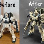 #これを見た人は連邦系MSをTLに放流しよう HGUC ガンダムEz8 完成しました。 ディティールアップ、スジボリをしてウェザリングで仕上げました。 #ガンプラ #ガンプラ好きな人と繋がりたい #ウェザリング #ガンプラの画像を貼るとRTされると聞いて #Ez8 #ガンダム ←before after→