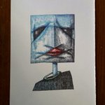 Head framed in a frame. 🟠🔴🔵 #painting #portraits #face #colours #frame #art #artistsontwitter #FridayMotivation