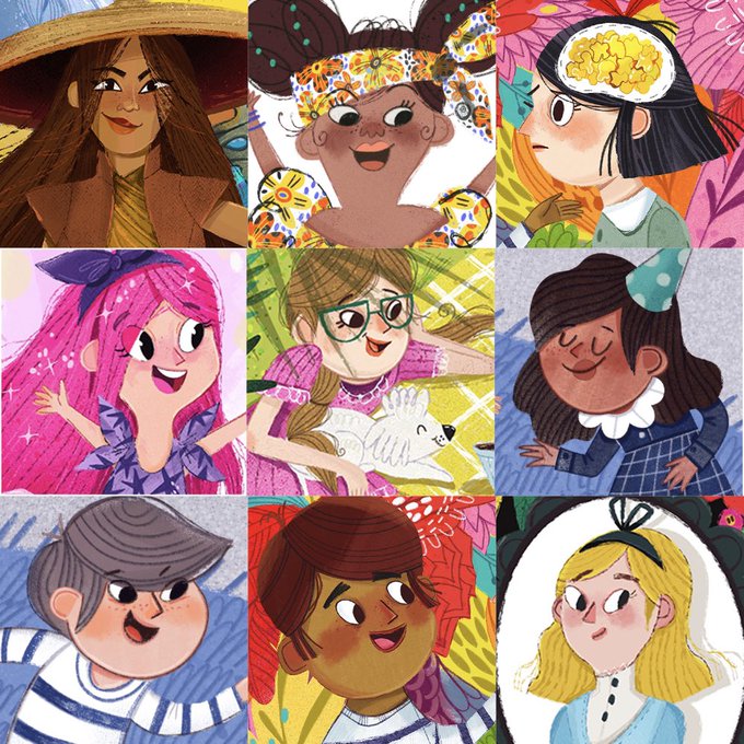 Happy Friday! I did another #FaceYourArt thing, people edition! Who is your favorite? @andreabrownlit @carynwiseman #faceyourart2022 #FaceYourArtChallenge #KidLitArt #KidLitIllustration #ChildrensBookIllustration #Childrensbookart #marushabelle