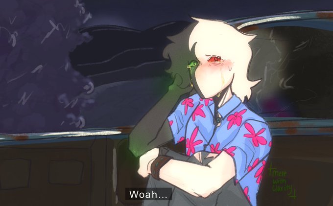 Risking it posting this late but heyo, another Fading Lights fake screen cap, 2/8. Like and retweet to help a girl out [#fadinglights #fadinglightsfanart #ranboofanart #ranboo @Hellenite1 ]
