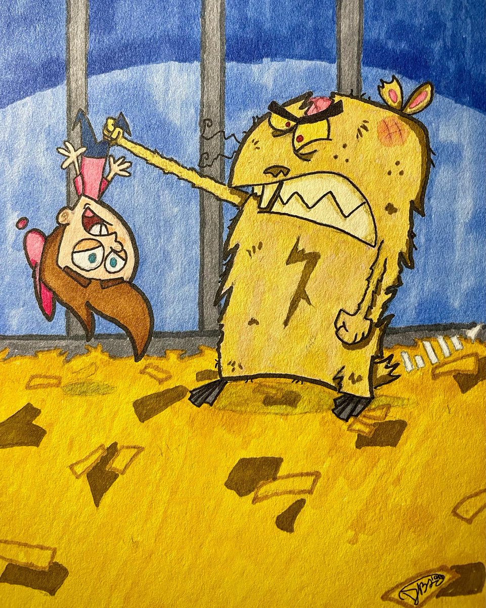 Day 3 “Pet” Eddie wanted to throw hands the second he came back to life 😂 🧟♂️ 🐹 👾! . . . @ArtSnacks @artezaofficial @DailyNickNews #inktober2022 #pet #FairlyOddParents #nostalgia