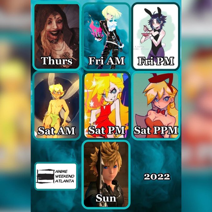 #animeweekendatlanta Lineup - Hope to see ya’ll there! - #cosplay #cosplayer #anime #promare #Genshinlmpact #pantyandstockingwithgarterbelt #fairybend #kingdomhearts #ResidentEvilVillage