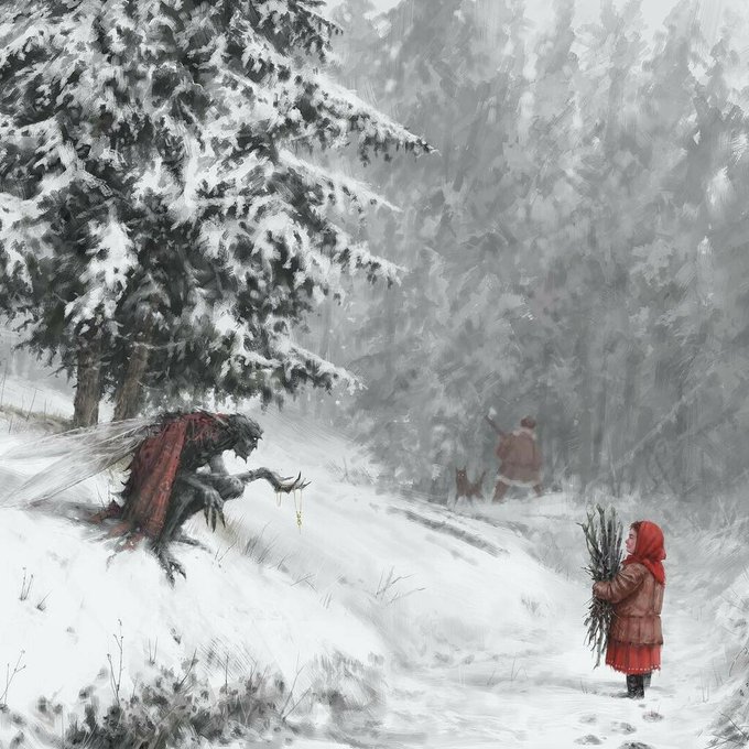 'Go ahead, take it. It will be our secret' by Jakub Rozalski (@mr_werewolf) • #jakubrozalski #mrwerewolf #conceptart #darkfantasy #winterart #fantasyartwork #fairytaleart #darkillustration #darkfairy #fantasyartwork #darkartists #digitalpainting instagr.am/p/CX7vzautuxS/