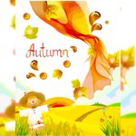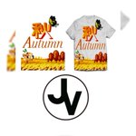 A scarf filled with drops of water and falling leaves; it includes a pair of scarecrows and a small plain orange text. #autumn #autumnseason #autumn2021 #fall #fallseason #fall2021 #art #artist #artwork #digital #digitalart #digitalartwork #illustration #illustrator