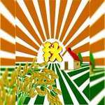 A landscape (a house and wheat) with the colors; orange and green along with a yellow kanji letter that has a red outline. #autumn #autumnseason #autumn2021 #fall #fallseason #fall2021 #art #artist #artwork #digital #digitalart #digitalartwork #illustration #illustrator