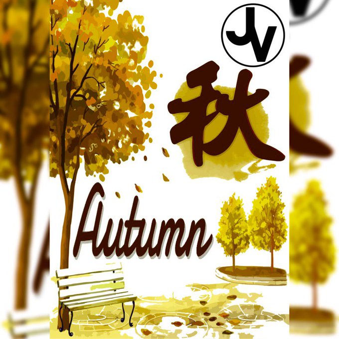 A color variation of orange, yellow and brown filled with trees, a single bench and a very dark orange kanji letter. #autumn #autumnseason #autumn2021 #fall #fallseason #fall2021 #art #artist #artwork #digital #digitalart #digitalartwork #illustration #illustrator