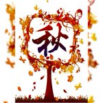 The shape of a square that has a color variation of red, orange and brown leaves with a kanji letter in the centered position. #autumn #autumnseason #autumn2021 #fall #fallseason #fall2021 #art #artist #artwork #digital #digitalart #digitalartwork #illustration #illustrator