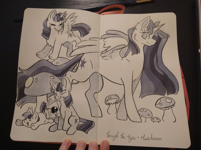 I feel like I didn't incorporate the mushroom prompt very well on this one, but I rally wanted to draw a bunch of versions of Twilight through the show together #inktober2022 #falldrawtober2022 #ponytober