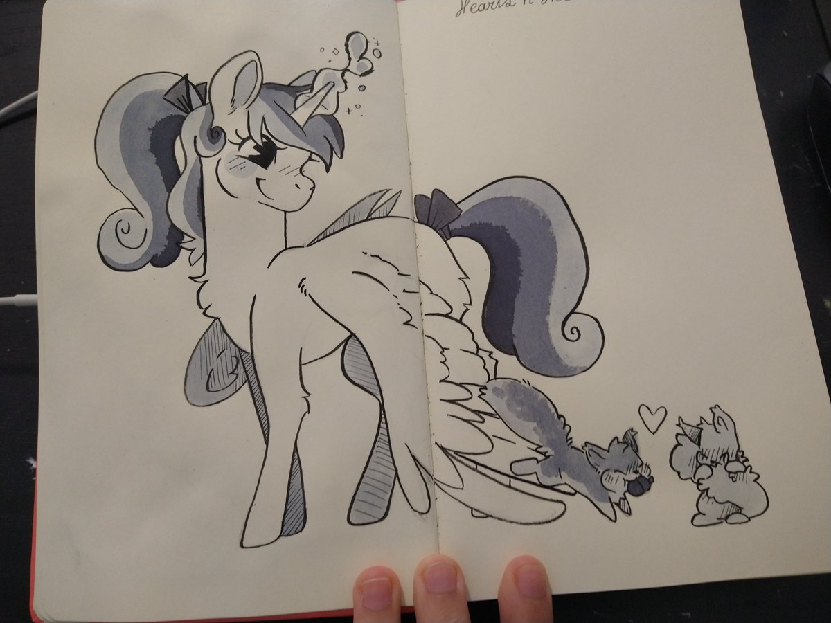 The sun has already set and ponies aren't sleeping yet, so it's time for little luna to get some headpats #inktober2022 #falldrawtober2022 #ponytober