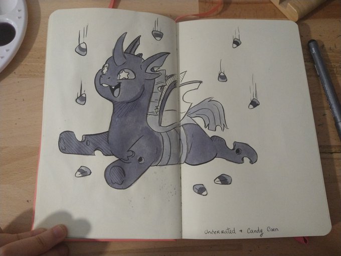 I couldn't really think of an underrated character, but there's never enough changelings around, so have this little buddy that has definitely eaten too much candy #inktober2022 #falldrawtober2022 #Ponytober