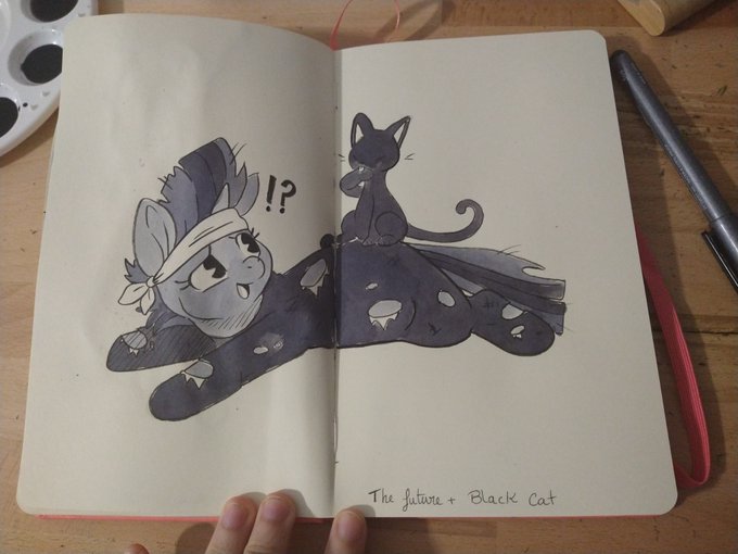 I haven't watched this episode in ages and I'm pretty sure there was no black cat involved, but I couldn't pass up the opportunity to draw time travelling Twi #inktober2022 #ponytober #falldrawtober2022