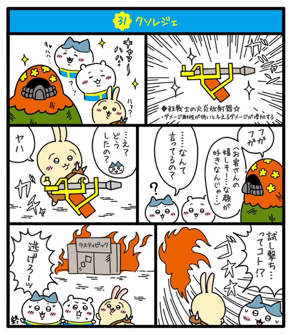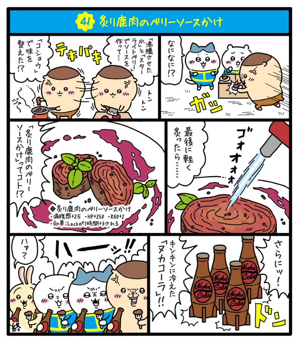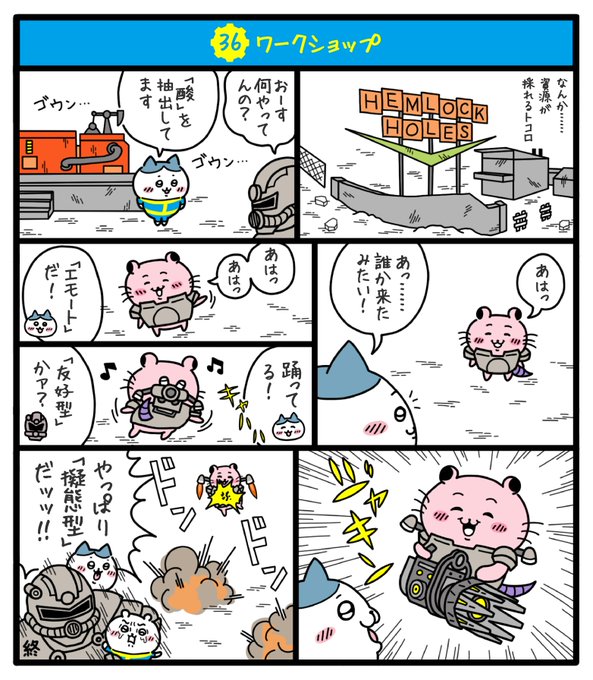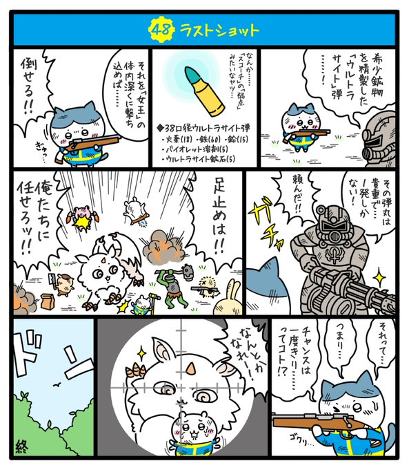 核戦争によって荒廃し弱肉強食の掟が支配する過酷な暴力の世界で ちいかわちゃん達が文明を復興する物語を描きました✨ #fallout76 #フォールアウト76 #ちいかわファンアート #ちい76