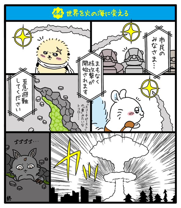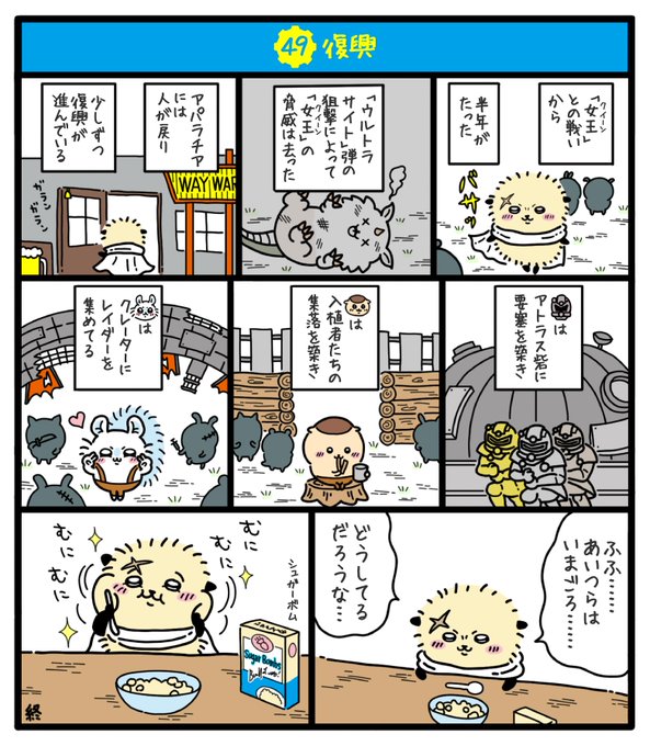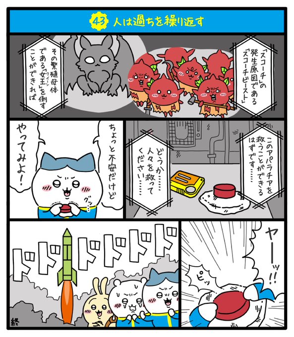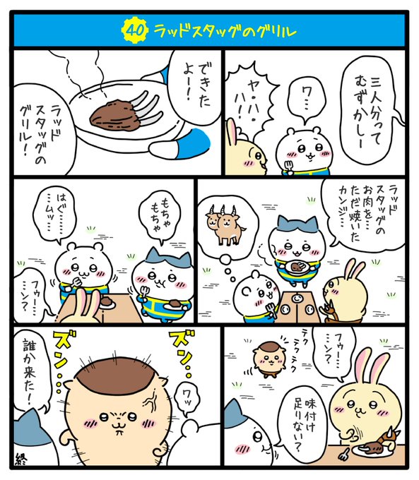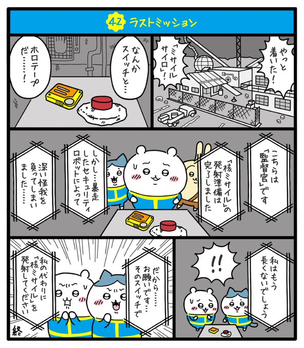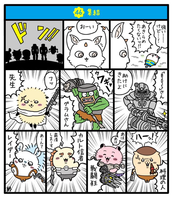 核戦争によって荒廃し弱肉強食の掟が支配する過酷な暴力の世界で ちいかわちゃん達が文明を復興する物語が完結しました👋 #fallout76 #フォールアウト76 #ちいかわファンアート #ちい76